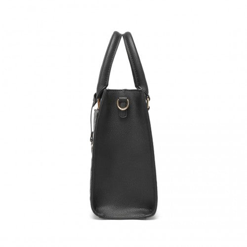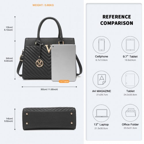Miss Lulu Chic V-Quilted PU Leather Sophisticated Handbag - Black