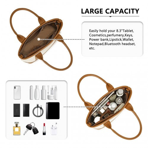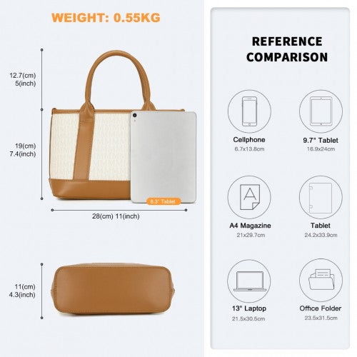 Miss Lulu Elegant PVC Leather Tote Bag with Monogram Pattern Convertible Shoulder Strap Top Handle Women's Handbag - Beige