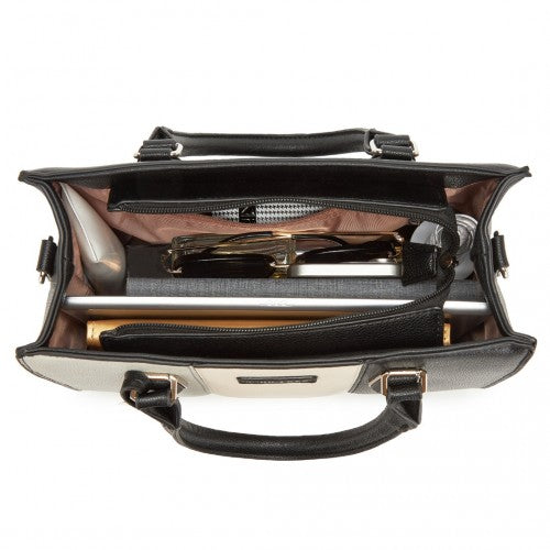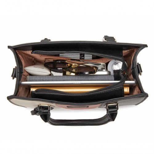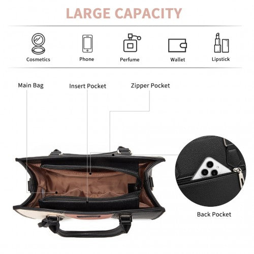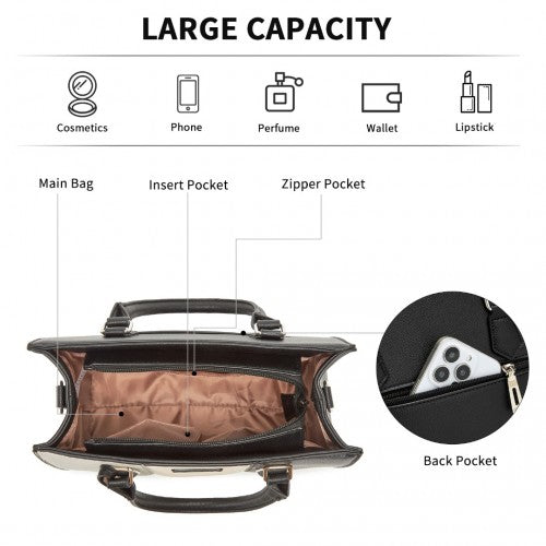 Miss Lulu PU Leather Three-Tone Stitched Shoulder Handbag - Stylish Daily Bag with Adjustable Strap