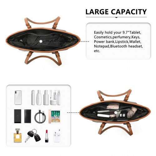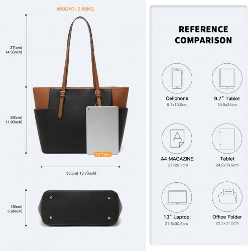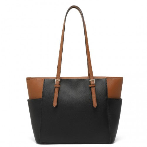 Miss Lulu Faux Leather Adjustable Handle Tote Bag - Black And Brown
