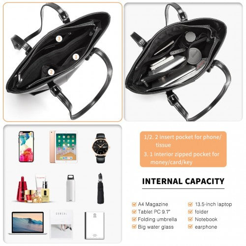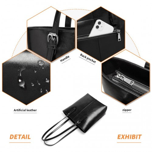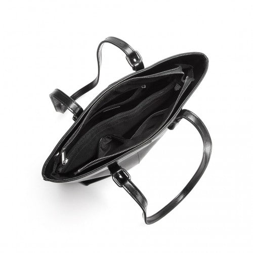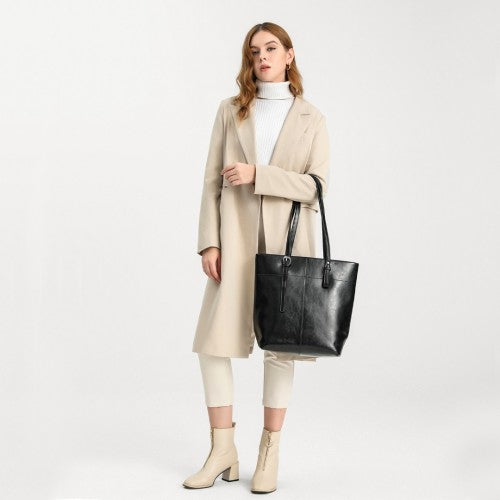 Miss Lulu Genuine Leather Tote Handbag - Black