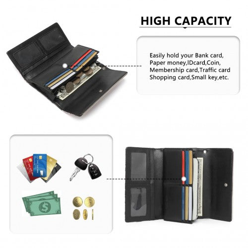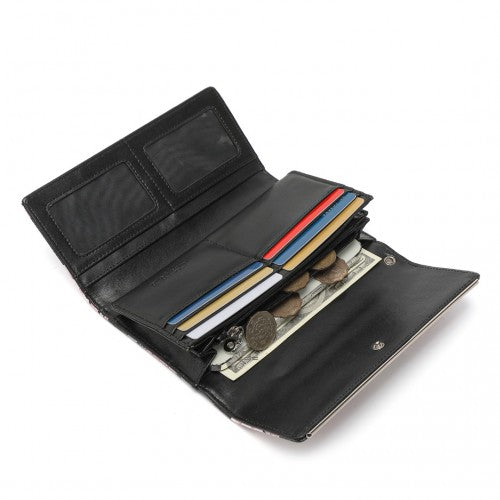 Miss Lulu Ladies' Flower Printed PU Leather Long Purse - Black