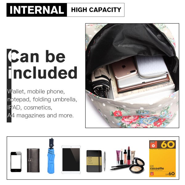 Miss Lulu Large Backpack Flower Polka Dot - Grey