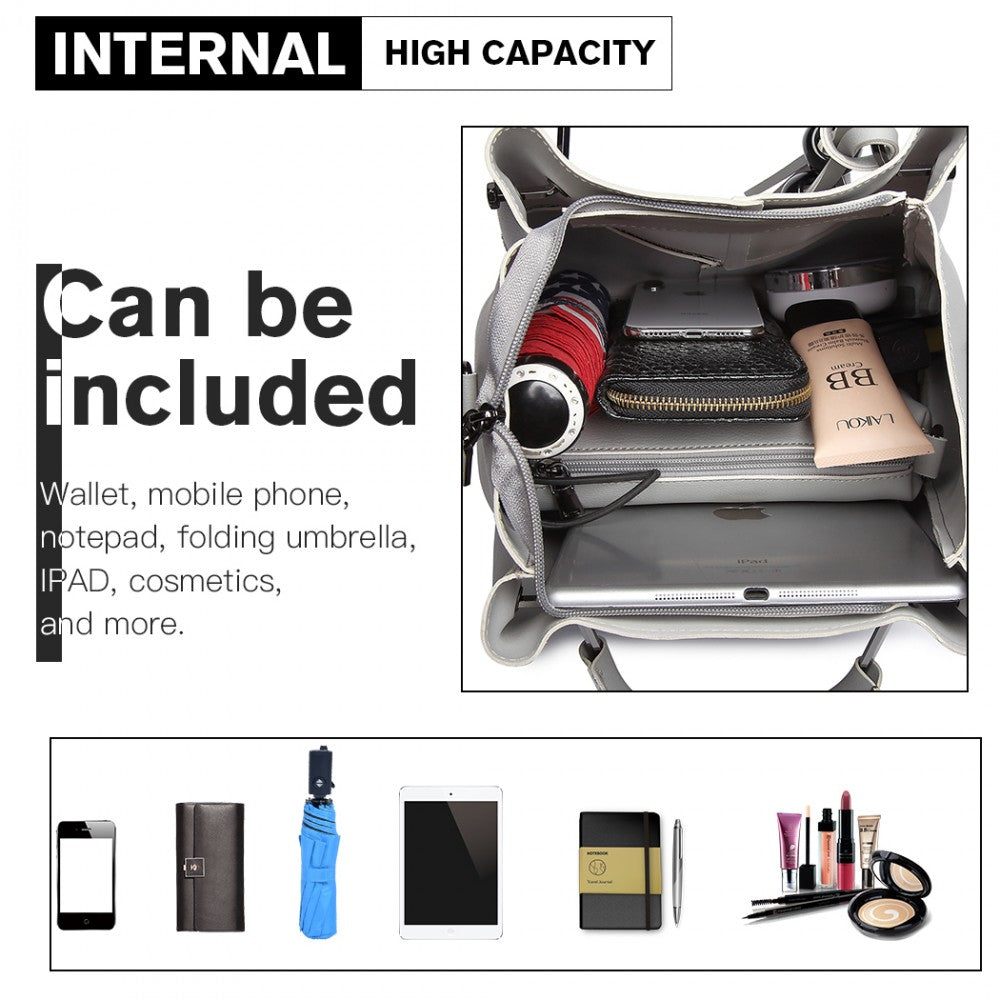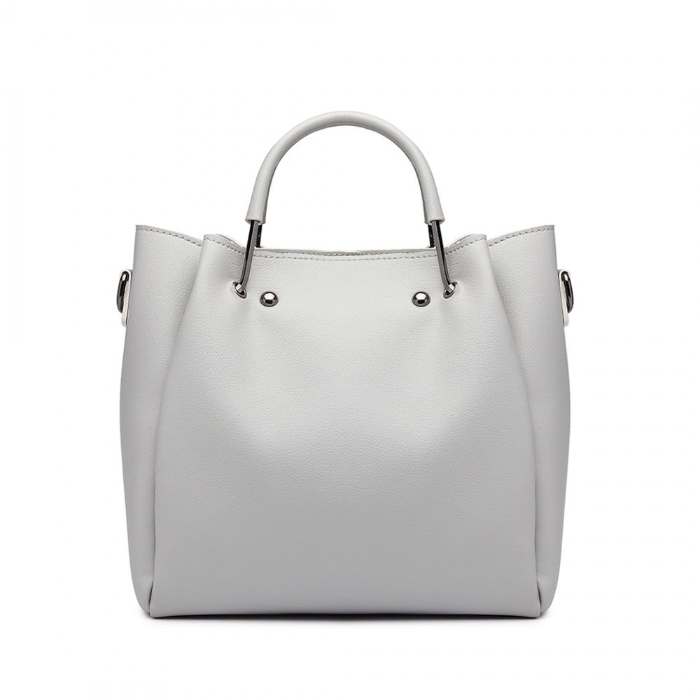 Miss Lulu Leather Look 2 In 1 Bucket Handbag - Grey