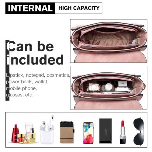 Miss Lulu Leather Look Midi Handbag - Pink