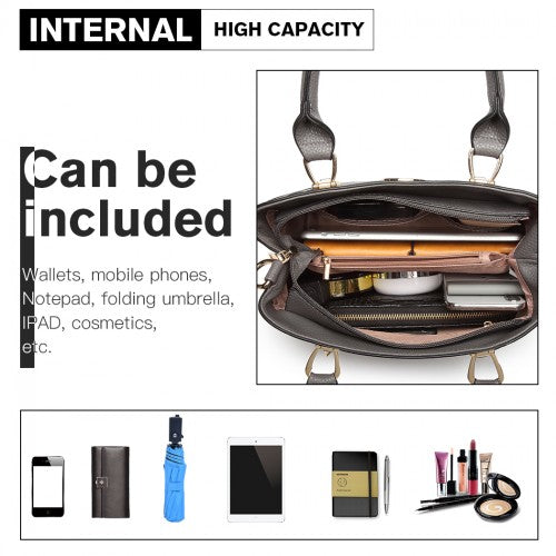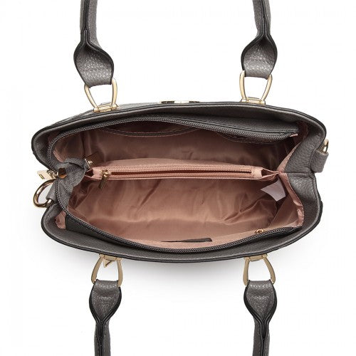 Miss Lulu Leather Look Weave Effect Shoulder Bag - Grey