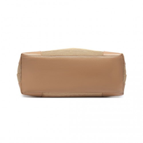 Miss Lulu Lightweight Chic Mesh Casual Shoulder Bag With Protective PU Accents - Khaki