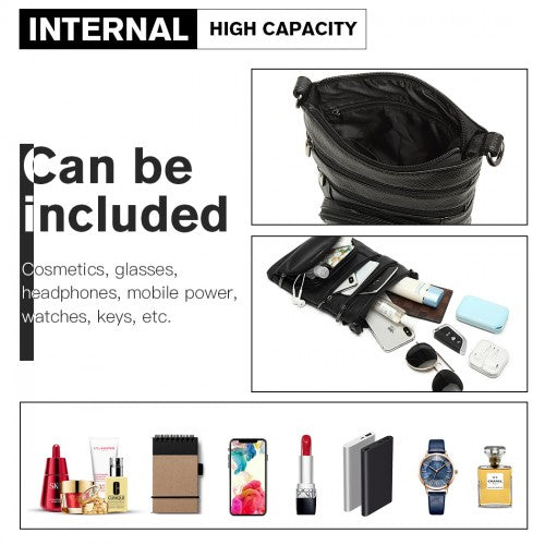 Miss Lulu Multi Pocket Leather Look RFID-Blocking Cross Body Bag - Black