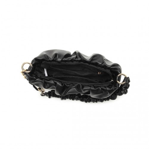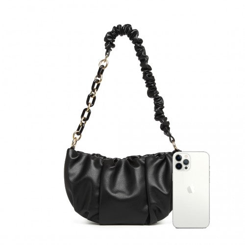 Miss Lulu Premium Chain Cloud-Like Pochette Handbag - Black
