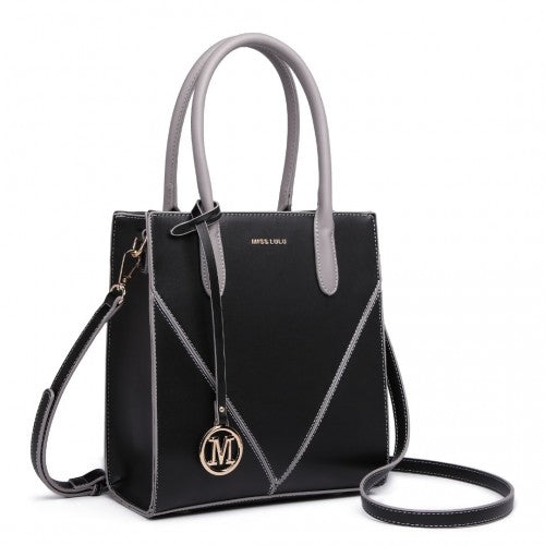 Miss Lulu Rectangular Soft Leather Cross Body Bag - Black