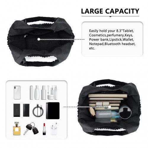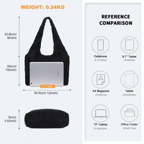 Miss Lulu Reversible Corduroy Shoulder Bag with Spacious Interior - Black