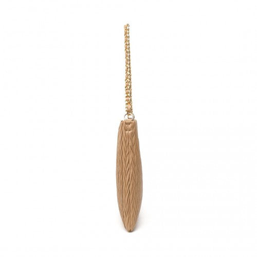 Miss Lulu Sophisticated Embossed PU Leather Commuter Shoulder Bag With Chain Strap - Camel