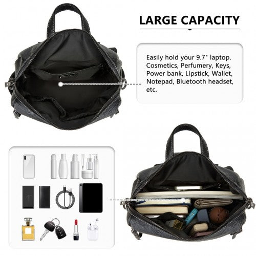 Miss Lulu Women's Convertible PU Leather Backpack & Shoulder Bag – Versatile 2-in-1 Design - Black