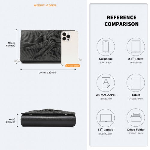 Miss Lulu Women's Pleated Bow Evening Bag Clutch Handbag - Black