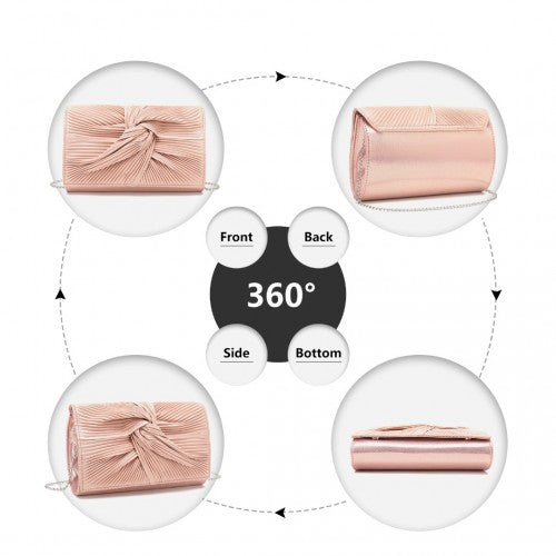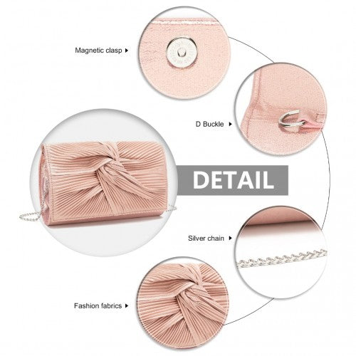 Miss Lulu Women's Pleated Bow Evening Bag Clutch Handbag - Pink