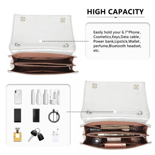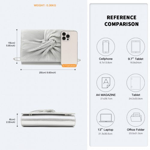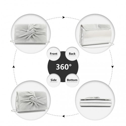 Miss Lulu Women's Pleated Bow Evening Bag Clutch Handbag - Silver