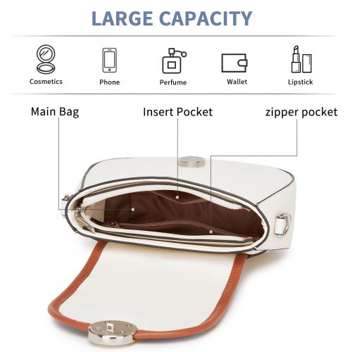 Miss Lulu Women’s PU Leather Ethnic Style Crossbody Bag with Corduroy Flap and Adjustable Strap - Blue and Beige