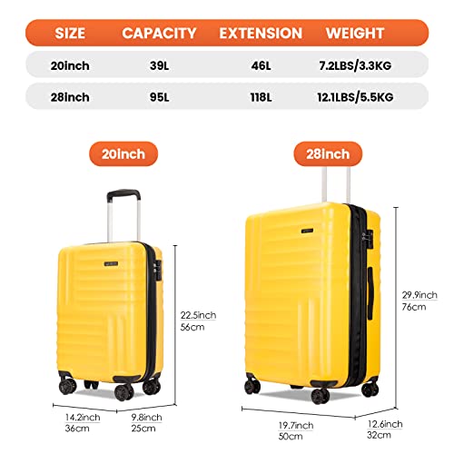 PRIMICIA GinzaTravel 3-Piece Luggage Sets Expandable Suitcases with 4 Wheels PC+ABS Durable Hardside Luggage sets TSA lock, Yellow, 2-Piece Set(20"/29"), Suitcase Spinner Wheels Scratch-resistant