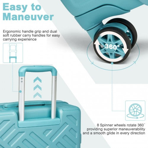 Supercase 20 Inch Sleek Geometric Pattern Hard Shell ABS+PC Cabin Carry-On Suitcase with TSA Lock - Blue
