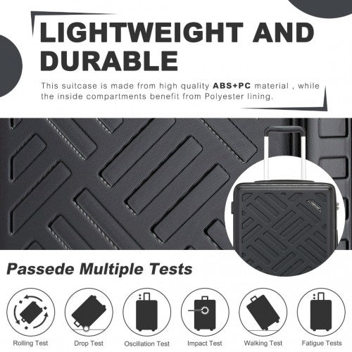 Supercase 28 Inch Sleek Geometric Pattern Hard Shell ABS+PC Check-In Suitcase with TSA Lock for Effortless Travel - Black